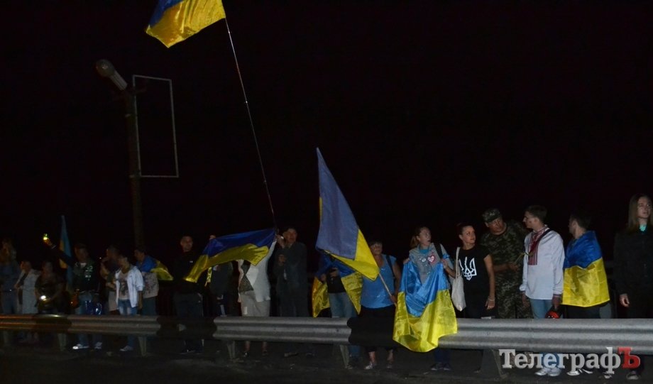 Вчера ночью в Кременчуге прошла всемирная акция «Мосты единства». Сотни кременчужан в вышиванках и просто, накинув флаги, вышли с фонариками и свечами на Крюковский мост. Участники акции держались за руки. Одна колона шла со стороны Крюкова, другая – со стороны центра. Когда только поднимались на мост, все дружно пели гимн нашей страны и кричали «Слава Украине – Героям Слава». Даже вспомнился былой Майдан. Но когда две колонны сомкнулись, репертуар поменялся. Кто был инициатором – не известно, но лишь после одного крика все начали петь нашу народную, ту самую – о Путине. Ла-ла ла…