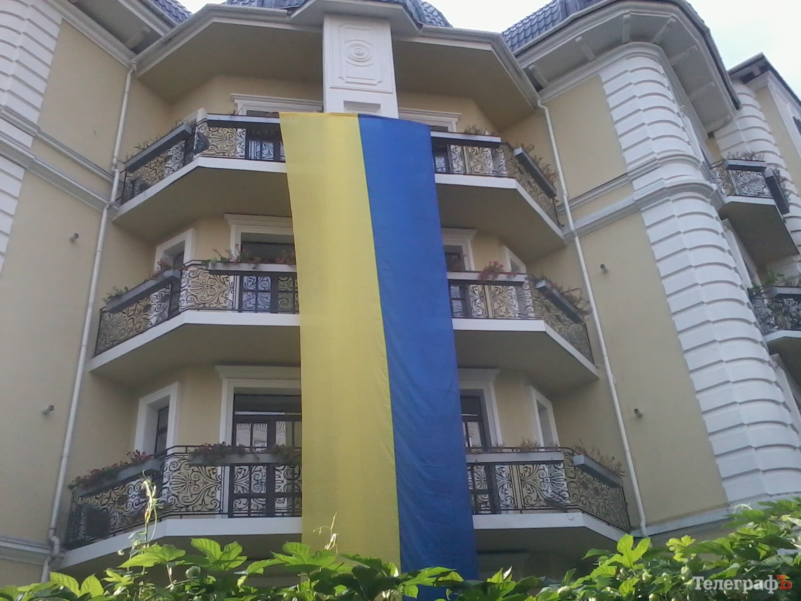 23 августа, в День флага Украины, на элитной четырехэтажке по ул. Бутырина, 20, вывесили огромный сине-желтый двуколор.