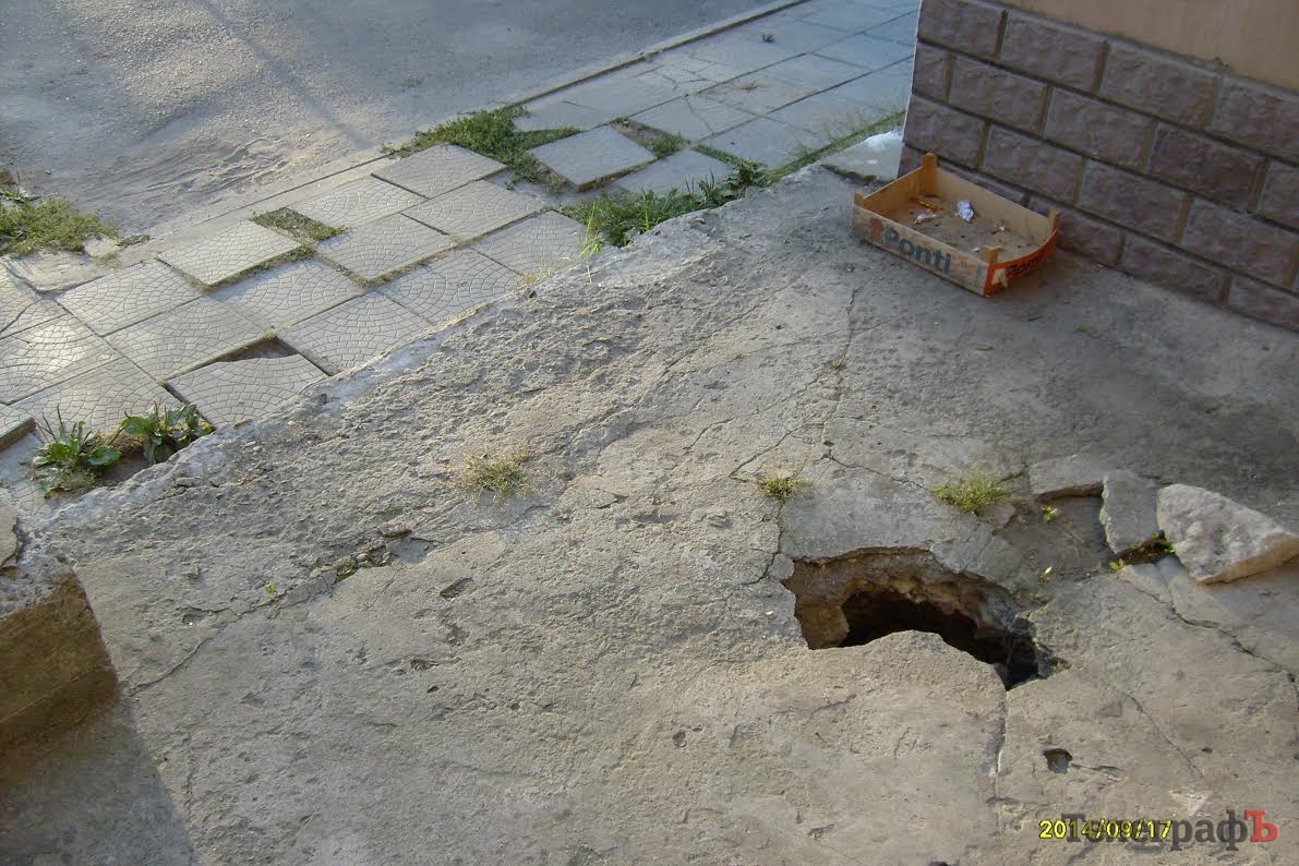 Возле входа в подъезд образовалась яма, которую никак не хотят устранить (а во дворе играет много маленьких деток, что чревато травматизмом).