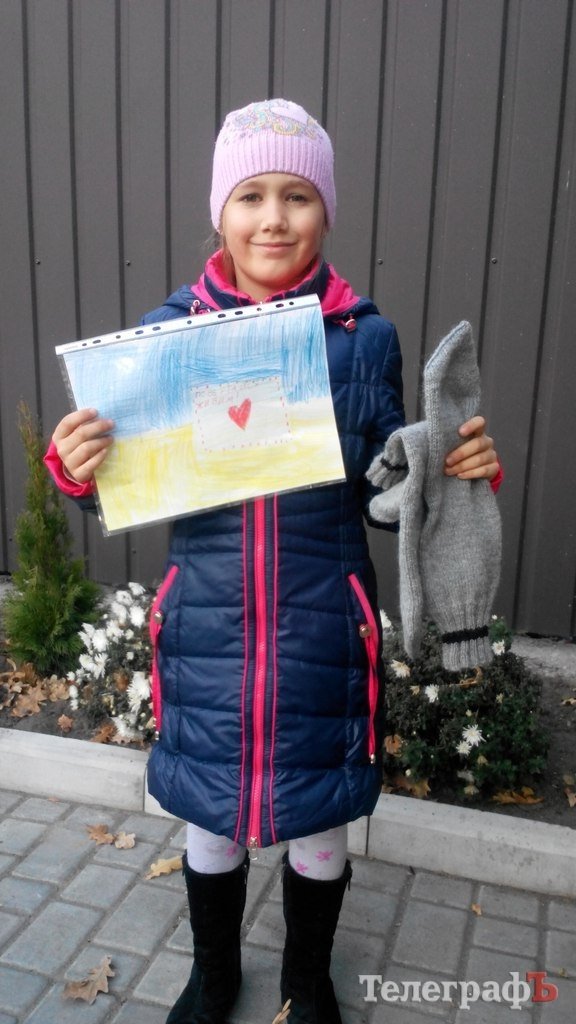 В Кременчуге в редакцию ИД «Приватна газета» приехала молодая семья и привезла продукты для военных. Но, кроме продуктов и вещей, они привезли еще кое-что, что так трепетно держала в руках маленькая кременчужанка Даша: вязанные носочки и рисунок.