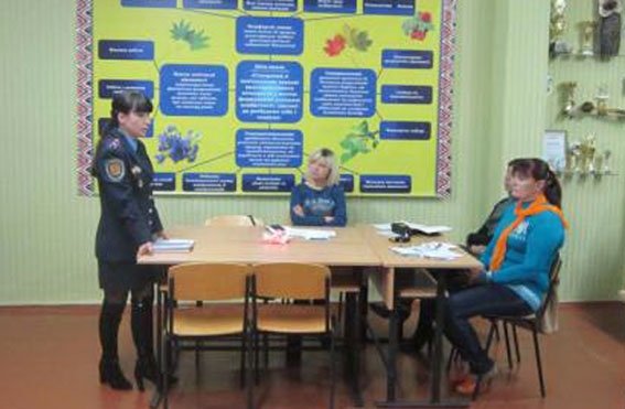 Руководитель криминальной милиции по делам детей Кременчугского городского отдела милиции майор милиции Юлия Лазоренко рассказала присутствующим об ответственности за надругательство над государственным символами и остановилась на безопасности детей во время учебного процесса.