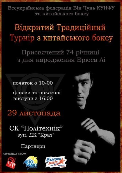 Турнир посвящен 74-летию со дня рождения Брюса Ли, одного из самых известных и популярных мастеров китайских боевых искусств.