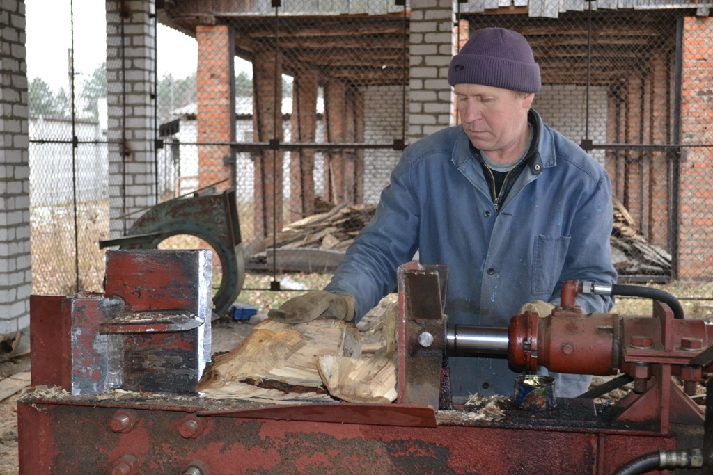 В связи с возрастанием спроса, на предприятии даже самостоятельно сделали станок для колки дров, которые сразу можно использовать для отопления.