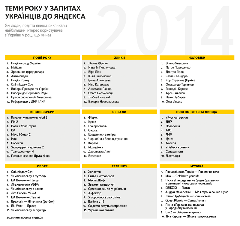 Крім війни українці цікавляться Януковичем і Фріске - Яндекс