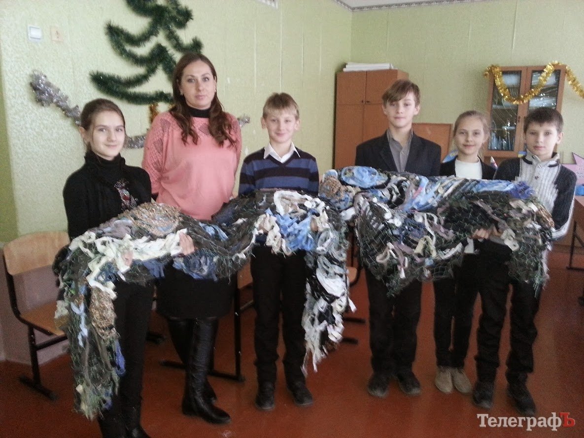 В Кременчуге дети сплели две маскировочные сетки для выпускника своей школы Владислава Козловского, который находится в г.Счастье (92 механизированная бригада – ред.). Делали их учащиеся школы №8 целых две недели.