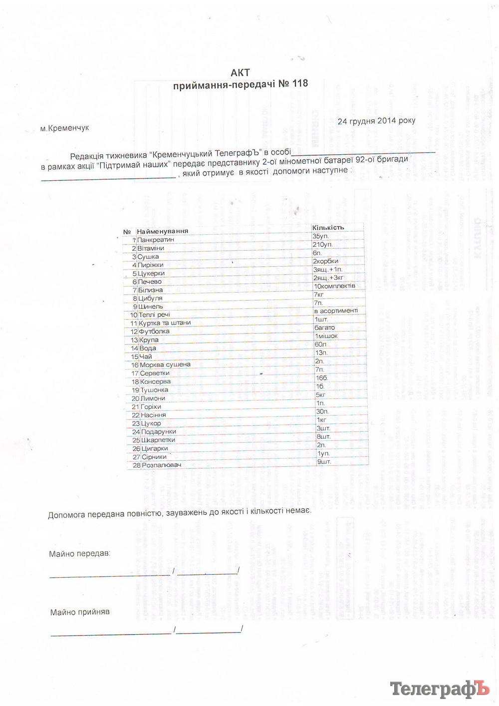 Акція "Телеграфа" на допомогу українським військовим. Ми закликаємо кременчужан надати посильну допомогу нашим солдатам.