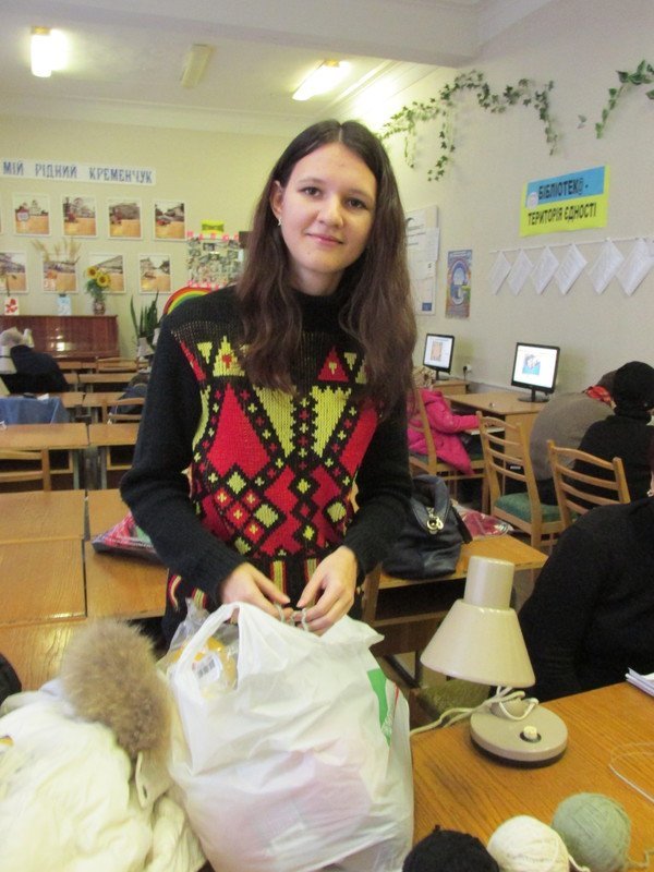 Теперь, кто приходит за книгами, еще и к вязанию приобщаются, одевают наших солдат.