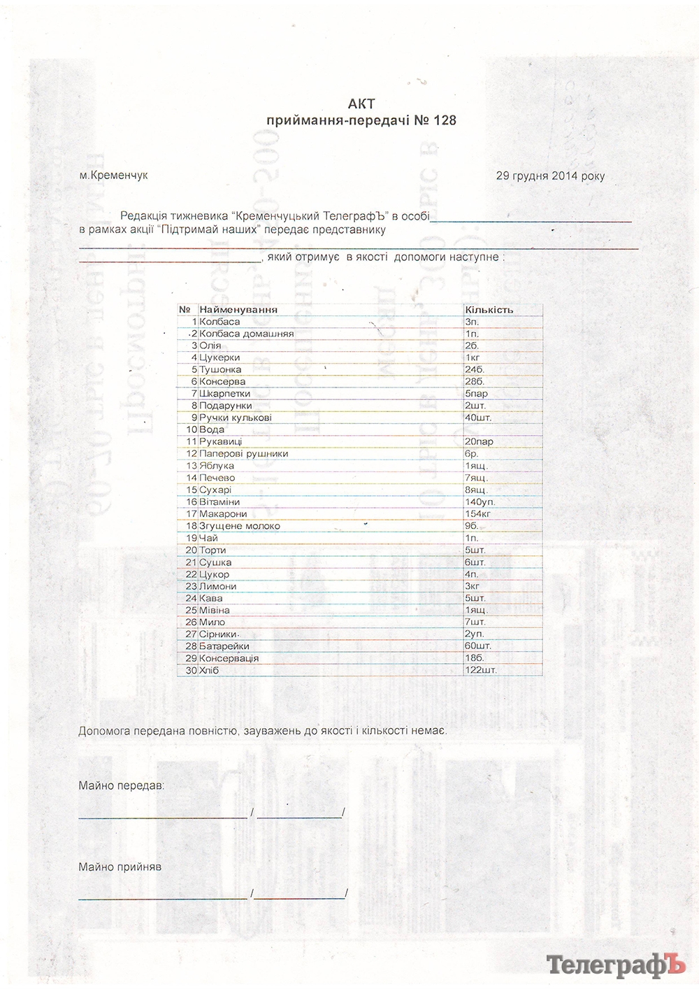 Акція "Телеграфа" на допомогу українським військовим. Ми закликаємо кременчужан надати посильну допомогу нашим солдатам.