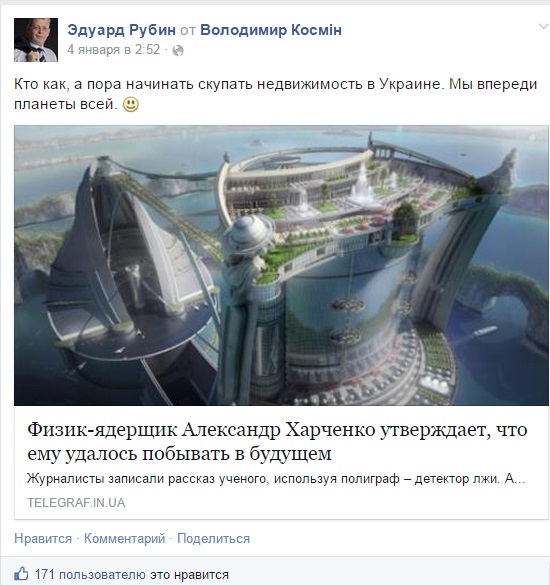 С 4 января на сайте "Телеграфа" наблюдается всплеск интереса читателей к статье, опубликованной еще в 2013-м году - Физик-ядерщик Александр Харченко утверждает, что ему удалось побывать в будущем.