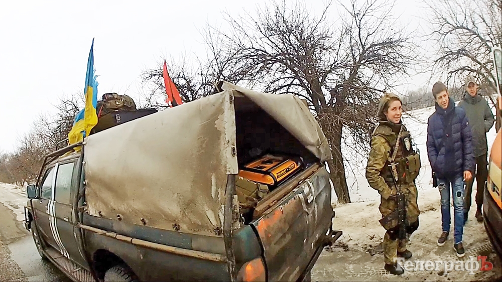 - 18 января рано утром погрузили автомобиль и поехали на базу. На границе Днепропетровской и Донецкой области мы встретили машину Правого сектора, которая ехала на передовую, и часть гуманитарной помощи отдали им. Приехав на базу, привезли помощь ребятам, которые после боев там отдыхают.