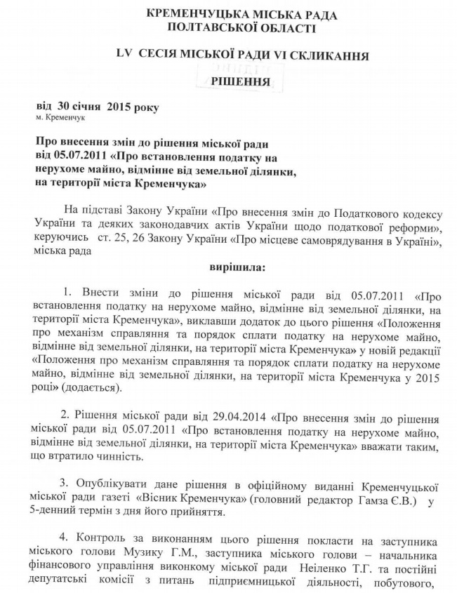 В Кременчуге сегодня, 30 января, на пленарном заседании сессии горсовета депутаты утвердили ставки налога на недвижимость и механизм его взимания. Ранее предполагалось, что процесс принятия этого решения займет больше времени. Но юристы выяснили, что оно не является регуляторным актом (то есть не подлежит обсуждению с общественностью).