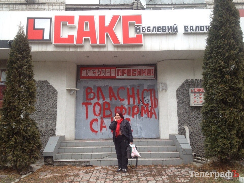 Сегодня, 2 февраля, женщина, которая называет себя хозяйкой САКСа, обрисовала красной краской здание магазина. Таким образом она хотела привлечь внимание к проблеме войны за право собственности на помещение: