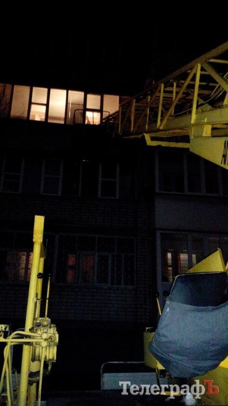 В Кременчуге 3 февраля около 21.00 «Телеграф» обнаружил в центре города такую картину: в темноте стрела автовышки устремлена к окнам жилого дома и по ней бесстрашно лезет парниша.