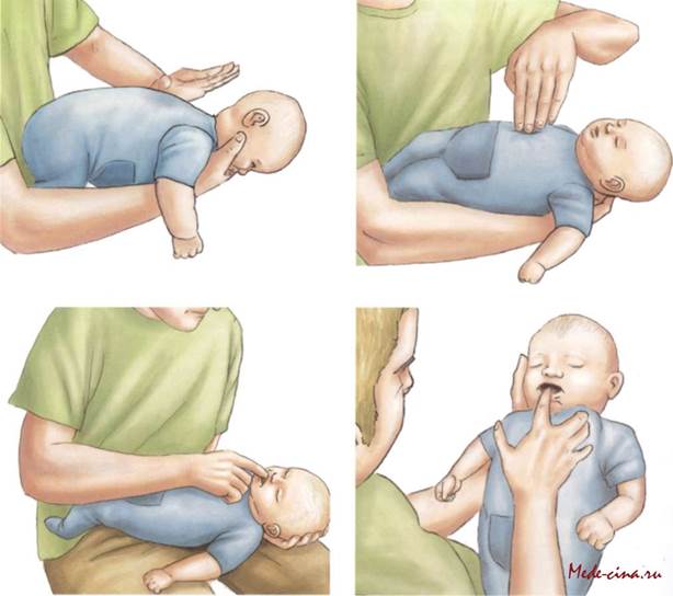 Оказывая помощь старшим детям, применяют метод Хеймлиха. Нужно стать за спиной ребенка, прижать его спиной к своей груди. На уровне желудка ребенка кулак одной руки нужно накрыть другой и, резко нажимая обеими руками снизу вверх, заставить ребенка сделать резкий выдох (вместе с выдыхаемым воздухом выталкивается инородное тело).