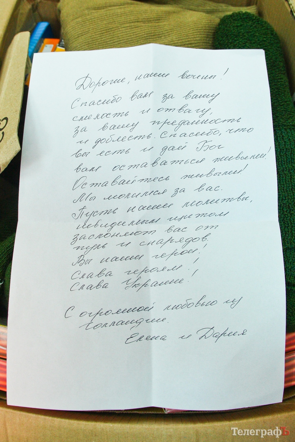 Также в посылке было письмо для защитников: