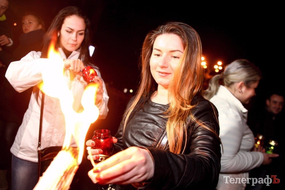 11 апреля поздно вечером в Кременчуг привезли Благодатный Огонь из Иерусалима. Каждый пришедший на площадь Независимости кременчужанин смог зажечь от огня свечу или лампадку.