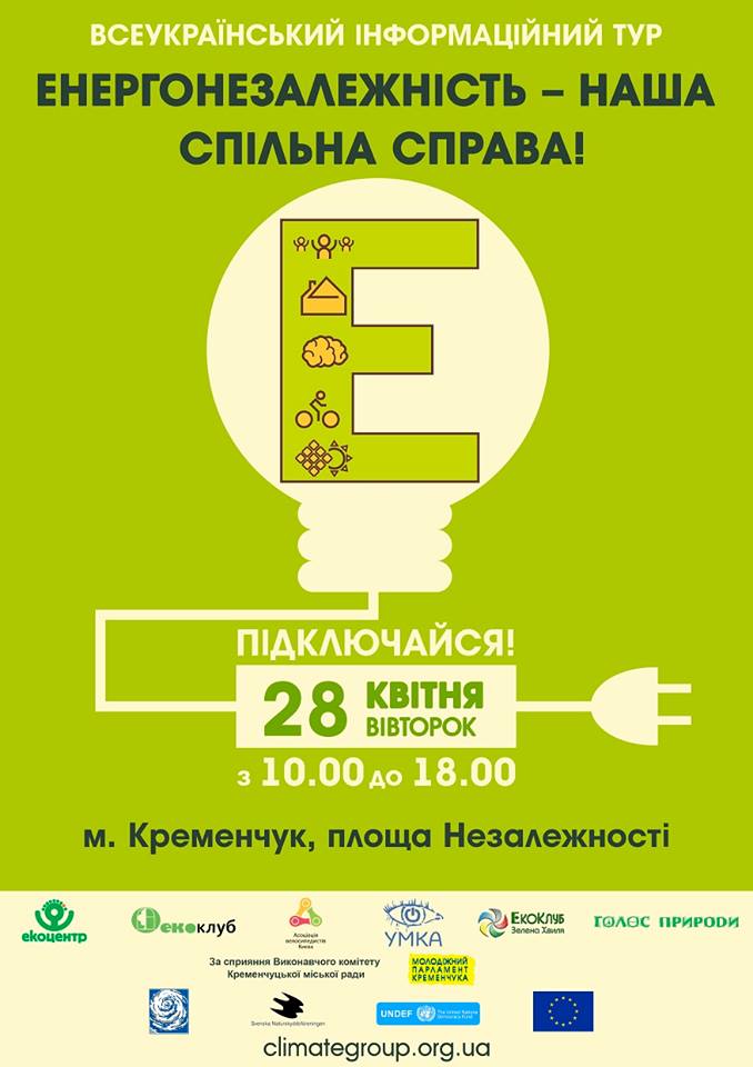 Сегодня в Кременчуге на площади Независимости в 10.00 стартовал всеукраинский инфотур «Энергонезависимость – наше общее дело!». Мероприятие будет длиться до 18.00.