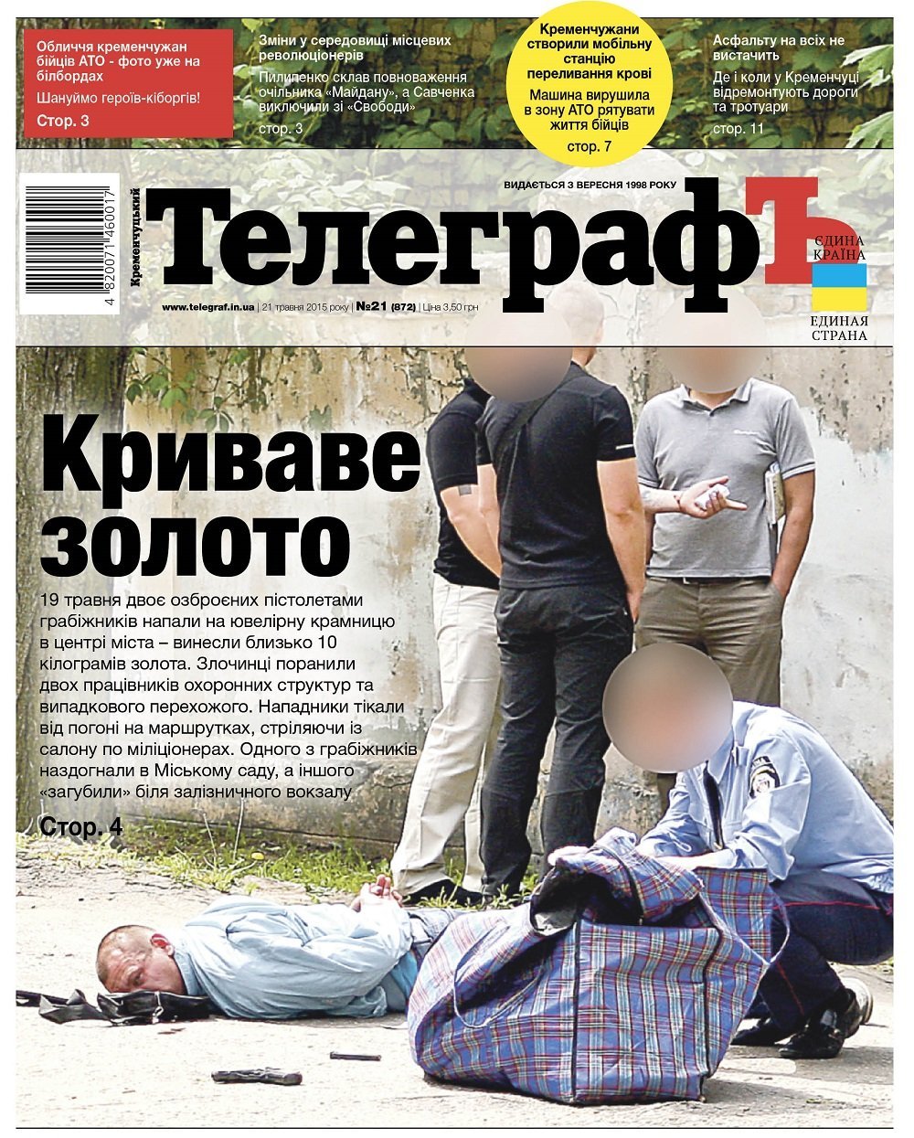 19 травня двоє озброєних пістолетами грабіжників напали на ювелірну крамницю в центрі міста – винесли близько 10 кілограмів золота. Злочинці поранили двох працівників охоронних структур та випадкового перехожого. Нападники тікали від погоні на маршрутках, стріляючи із салону по міліціонерах. Одного з грабіжників наздогнали в районі електростанції, у Міському саду, а іншого «загубили» біля залізничного вокзалу.