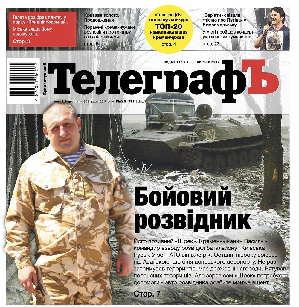 Його позивний – «Шрек». Кременчужанин Василь – командир взводу розвідки батальйону «Київська Русь». У зоні АТО він вже рік. Останні півроку воював під Авдіївкою, що біля донецького аеропорту. Не раз затримував терористів, має державні нагороди. Рятував поранених товаришів. Але зараз сам «Шрек» потребує допомоги – авто розвідника розбите майже вщент…