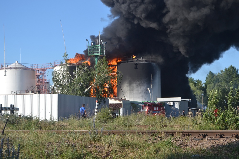 Напомним, что пожар на нефтебазе начался накануне вечером. Потушить пламя до утра не удалось нескольким сотням чрезвычайников со спецтехникой, а сегодня утром на нефтебазе раздался взрыв. По состоянию на 8.00 утра там горели 8 из 17 резервуаров с топливом.