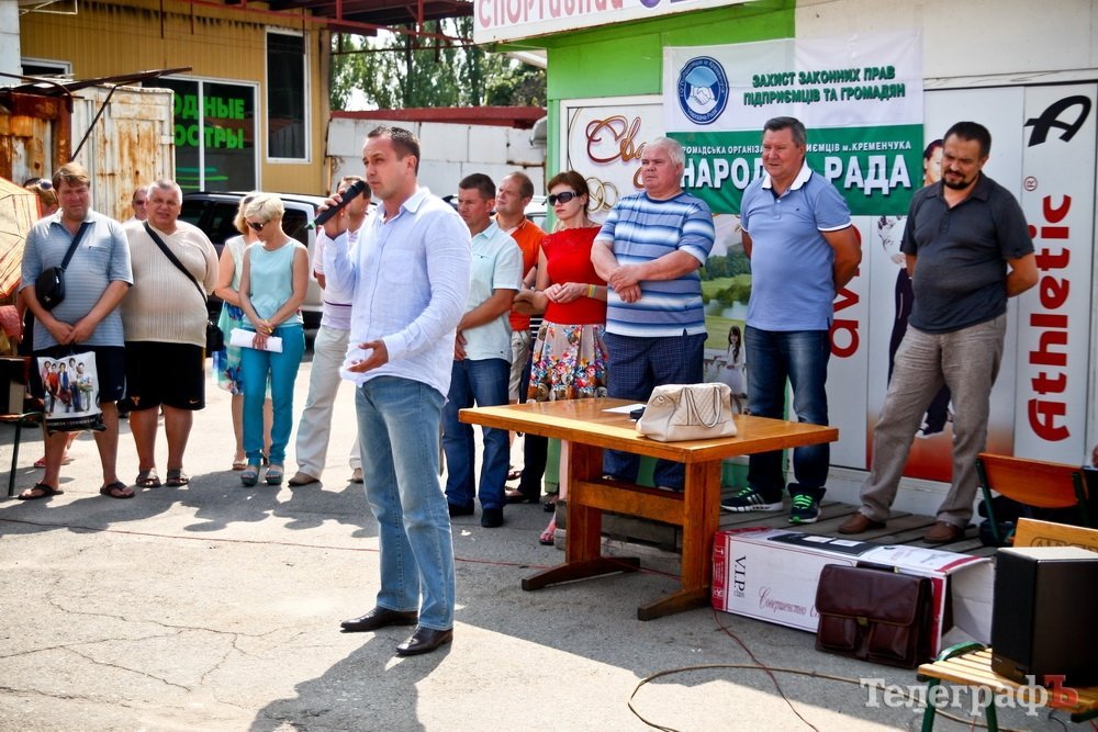 Сегодня, 10 июля, около 100 предпринимателей, работающих на рынке «Приднепровский», вышли на митинг против давления на малый бизнес. Его организовала общественная организация предпринимателей «Народна рада». Присутствовали и представители из Киева. От городской власти пришли встретиться с единщиками начальник отдела торговли и предпринимательства горисполкома Людмила Жорняк, депутаты Юрий Гриценко, Дмитрий Кравченко, представители налоговой службы.