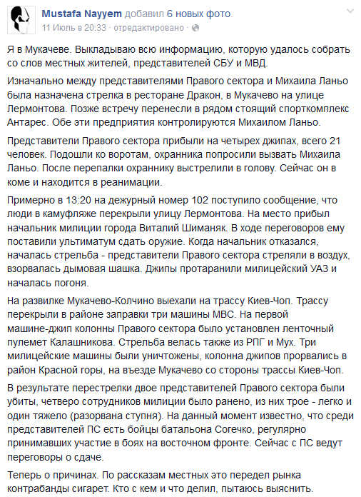 В Мукачево был введен спецназ СБУ и бойцы Национальной гвардии. Правый сектор отошел в лес. Переговоры длятся до сих пор.