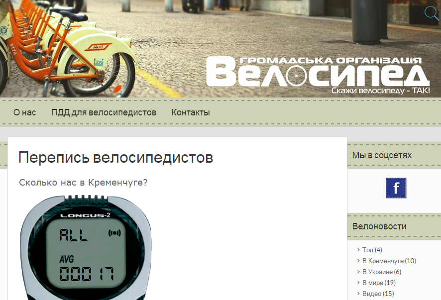 У Кременчуці за ініціативи ГО «Велосипед» проводиться велоперепис. На сайті ГО «Велосипед» створено базу «двоколісних» із даними про велосипед, що допоможе при можливому викраденні.