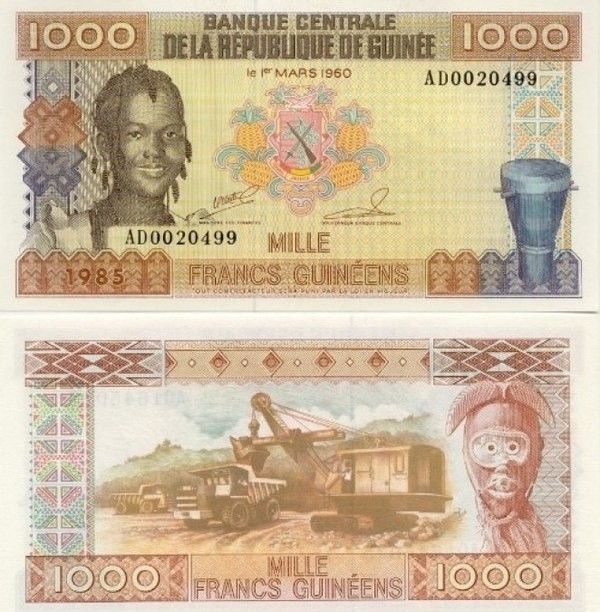 На купюре в 1000 гвинейских франков изображен самосвал БелАЗ.![]()