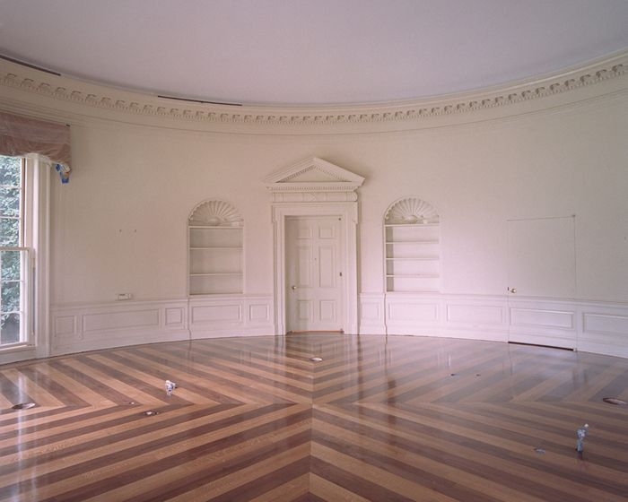 Пустой овальный кабинет Белого дома США во время ремонта, 2001 год![]()