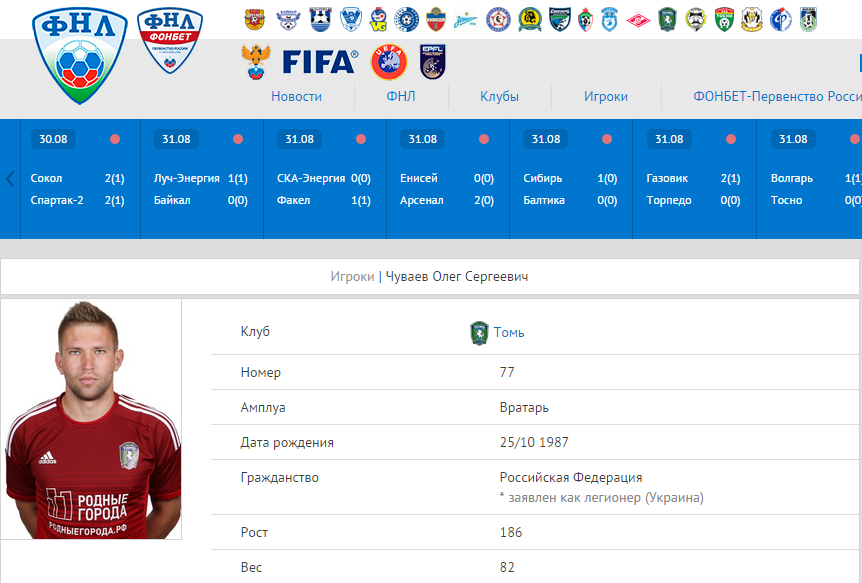 28-річник кременчужанин воротар Олег Чуваєв змінив громадянство України на російське, повідомляє офіційний сайт федерації національної ліги Росії (ФНЛ).