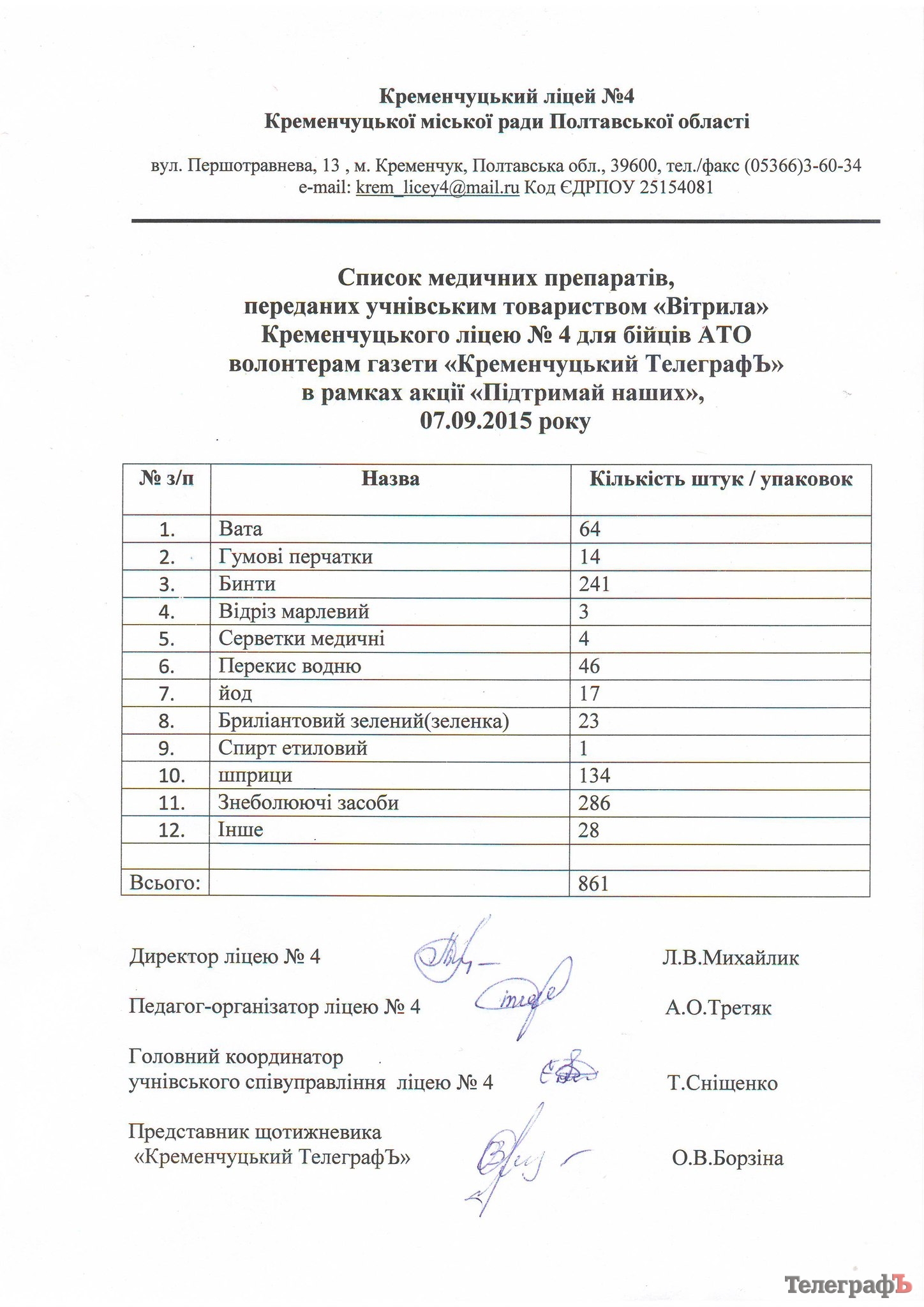 Ученики и преподаватели кременчугского лицея №4 передали много медикаментов для военных. Школьники собрали самое необходимое, отказавшись от букетов и конфет для учителей на 1 сентября.