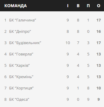 Турнірна таблиця