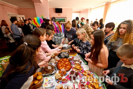 Дети подошли к мероприятию с недетской сёрьезностью и детским энтузиазмом - школа "стояла на ушах". Стены на всех этажах пестрили рекламными объявлениями и вывесками, изо всех дверей торчали головы и слышны были крики зазывал, отовсюду пахло едой и звучала весёлая музыка. Серьёзный лицей на день превратился в радостную ярмарку или необычный, громкий базар.