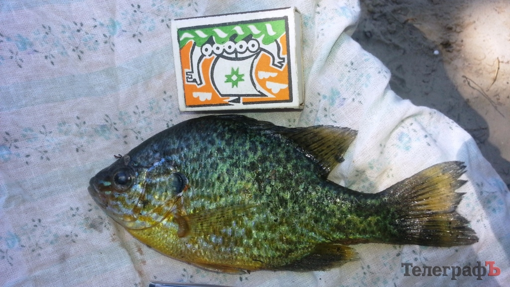 - 2 мая были на рыбалке на реке Псел в селе Дмитровка. Ближе к обеду к нам подошел парень с "чудо-уловом", сказал, поймали дети, вот посмотрите, может, вы опознаете "чудо-рыбку":). Мы были в шоке от увиденного! Хотя рыбка оказалась "Радужным окунем или Солнечным окунем" - нашел на вики. Я лично видел такое чудо в первый раз, - поделился с нами своими впечатлениями Станислав.