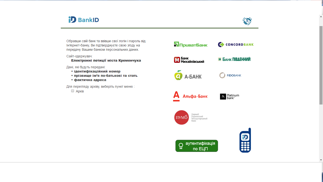 Чтобы поддержать электронную петицию, нужно проходить идентификацию через банк. Как сообщает пресс-служба исполкома, такое нововведение необходимо для получения достоверных данных о пользователе, который подписывает электронную петицию. Функцию подписи электронных петиций с помощью системы авторизации Bank ID разрабатывает КП «Міськоформлення».
