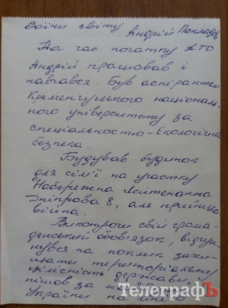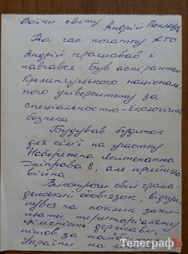Андрей Покладов был награжден самой высокой наградой среди кременчужан, погибших в войне на востоке Украины – орденом Богдана Хмельницкого ІІІ степени. Он был командиром зенитной батареи и участвовал в кровопролитных боях под Дебальцево. Андрей Покладов погиб при выходе украинских войск из этого города. Его именем названа одна из центральных улиц Кременчуга.
