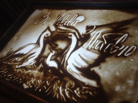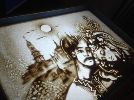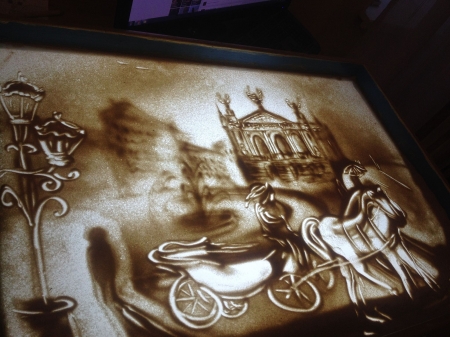 Художница Татьяна Гавриленко, проживающая сейчас в Риге, выступила с песочным шоу.