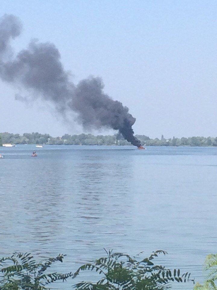 – Горит лодка на Днепре рядом с Посейдоном! Ни людей никого не видно. Рыбаки рядом стоят на лодках смотрят и никто не подплывает ближе.