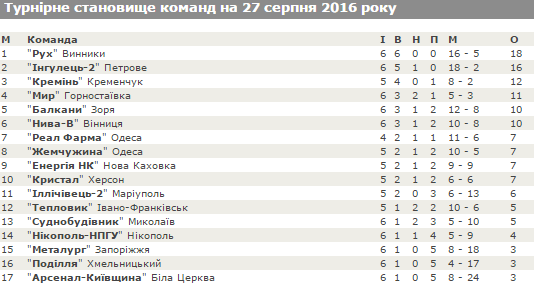 Турнірна таблиця