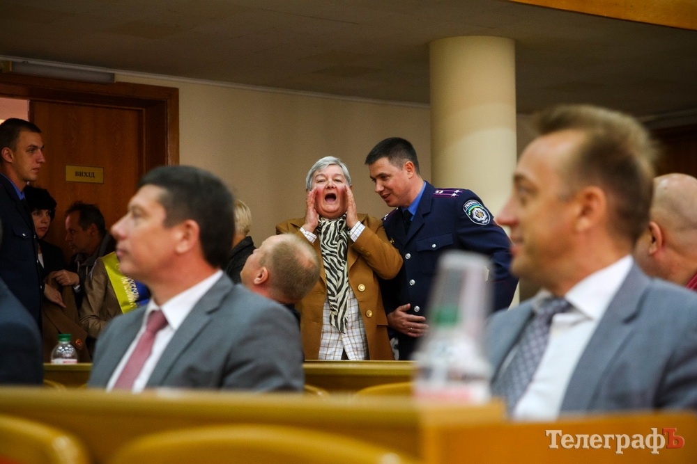 После бурных дебатов состоялось голосование, результаты которого мы указали выше. Мэр вручил знаки отличия Почетным гражданам Кременчуга Тамаре Посяник и Михаилу Загирняку. Вручение сопровождалось пронзительными криками активистки Трохименко. Она кричала «ганьба».