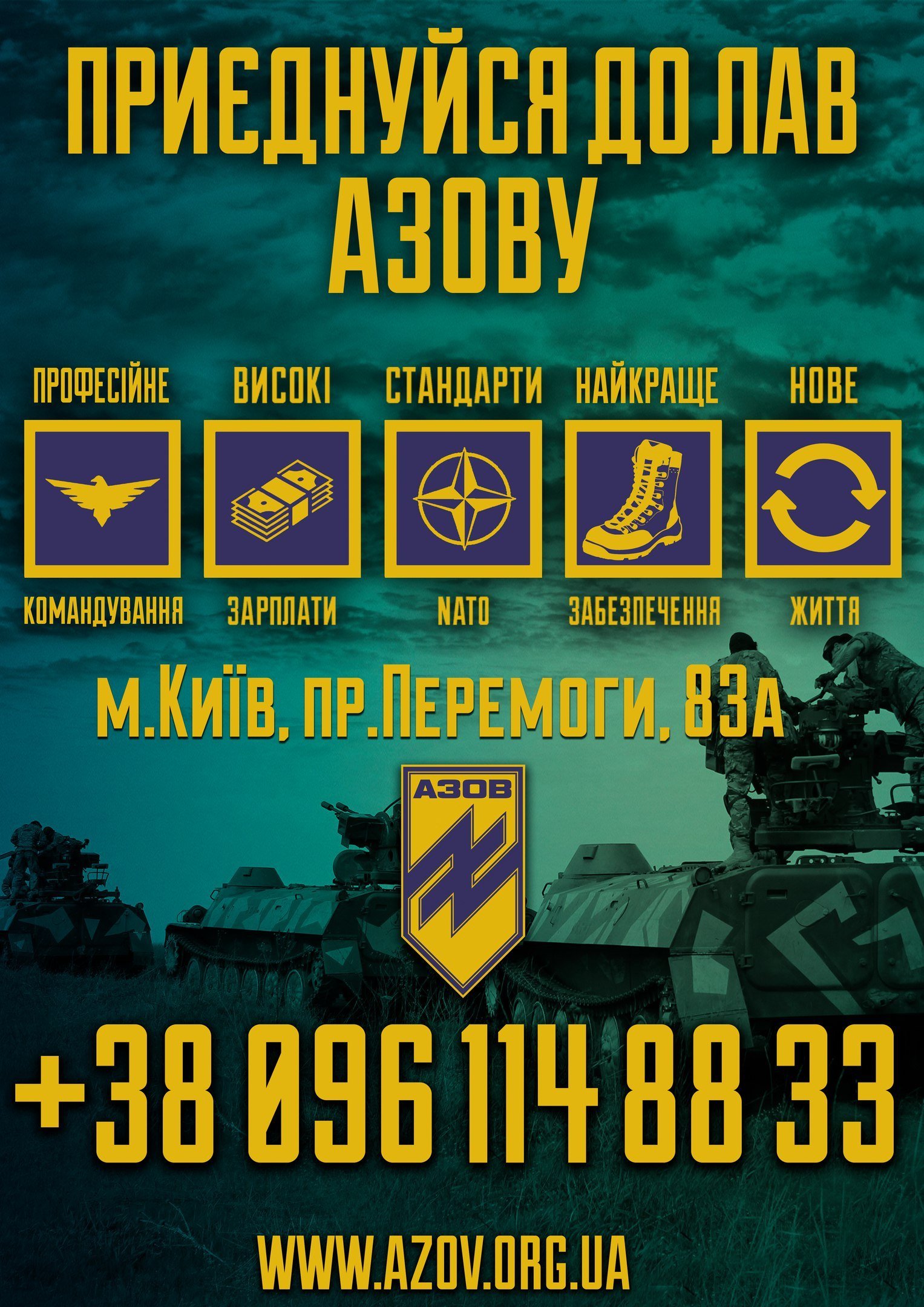 Підрозділ спеціального призначення «Азов» запрошує до своїх лав. Кожен новобранець, котрий вирішить розпочати військову кар’єру отримує: