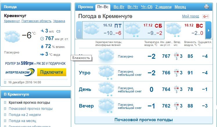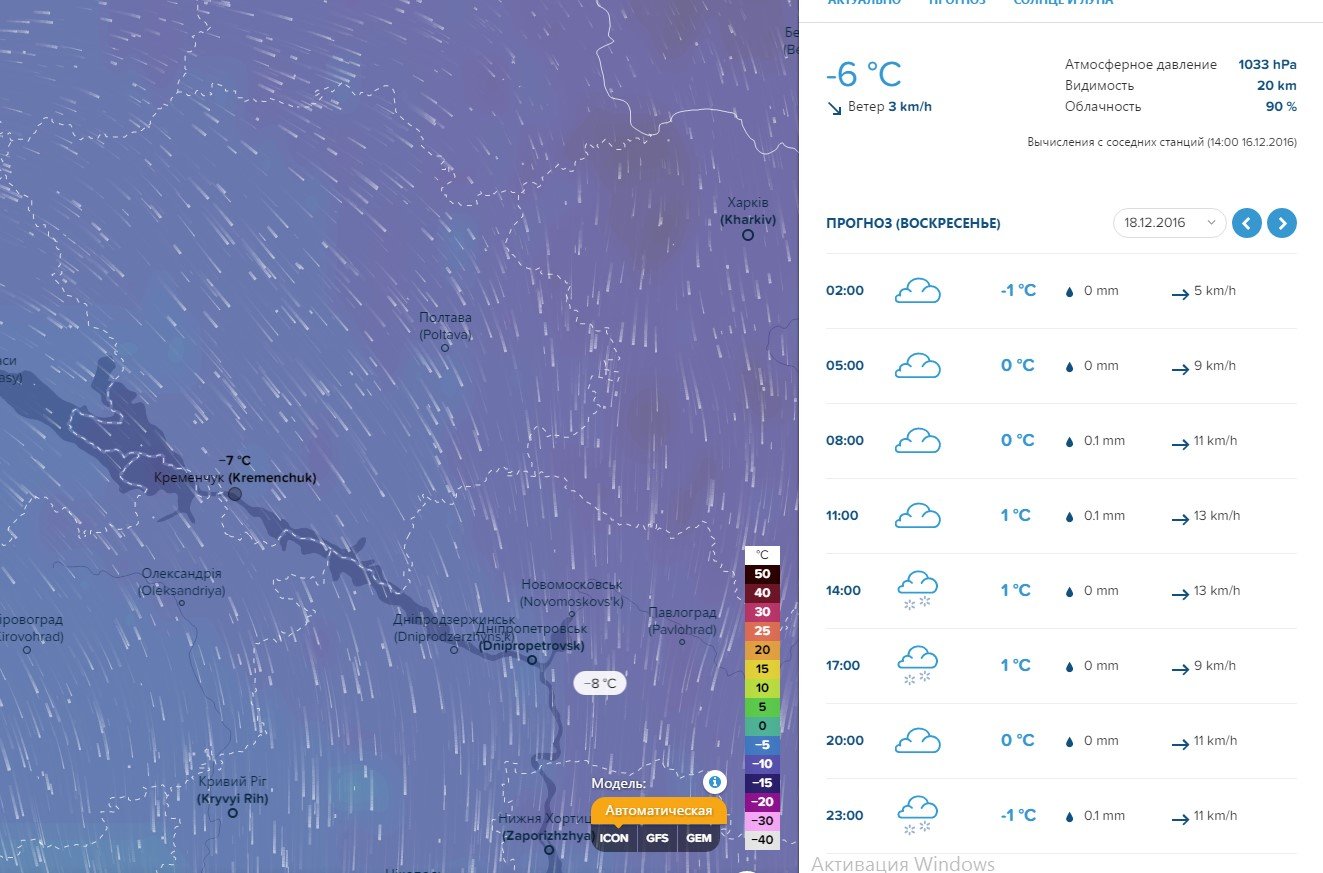 rp5 попереджає кременчужан про переохолоджений замерзаючий туман з видимістю менше 1 км в ніч на неділю, 18 грудня.