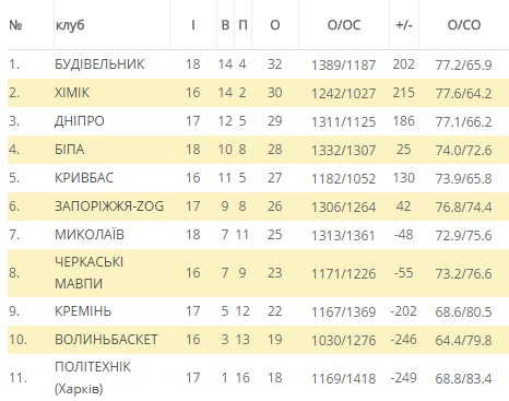 Турнірна таблиця