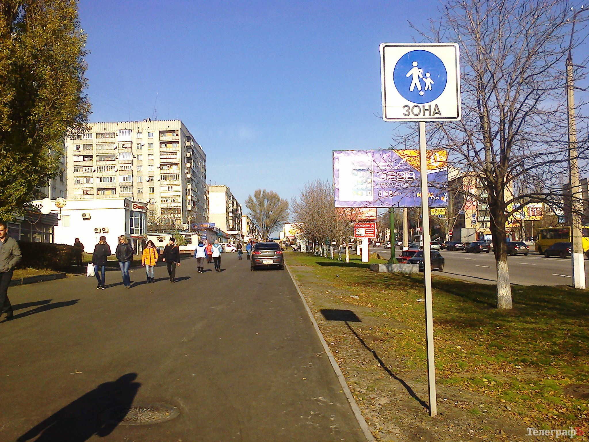 Пешеходная зона на просп. Свободы в Кременчуге, между ул. Европейской и Троицким рынком, исчезла. После того, как коммунальники сделали новый широкий тротуар, они поставили со стороны дорог и заездов знаки «Пешеходная зона».