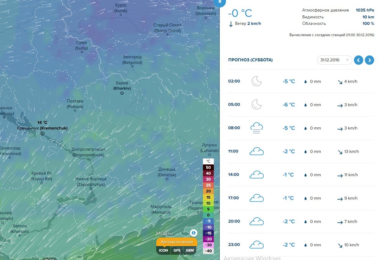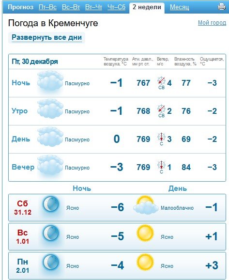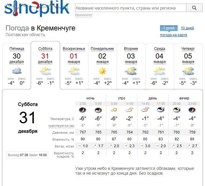 Такий же прогноз для Кременчука дає Sinoptik.