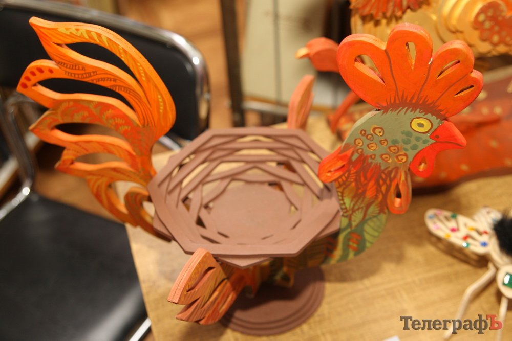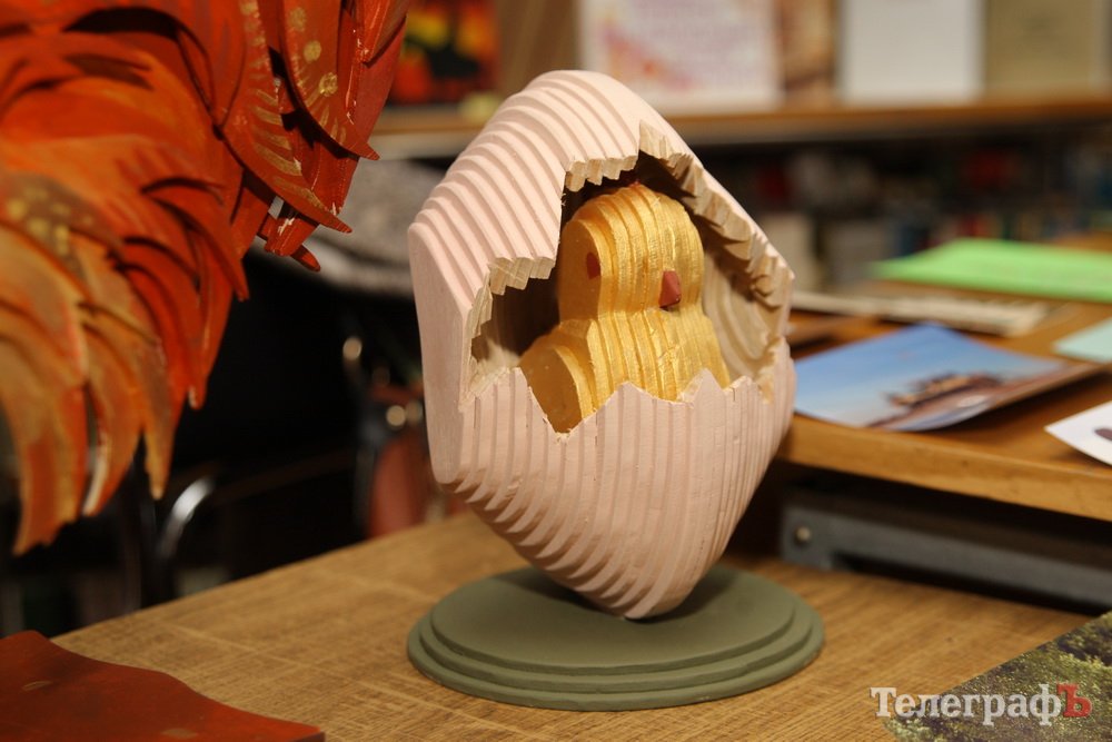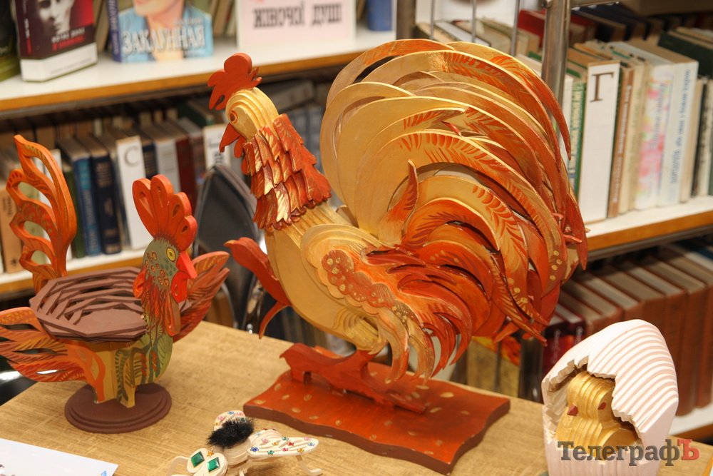 - Під час оформлення першого півника з'явився “апетит”, і вирішили ще одного півня зробити, уже більш практичного, в якому можна тримати цукерки чи печиво. Він теж зі столярної майстерні перейшов у кабінет арт-терапії.