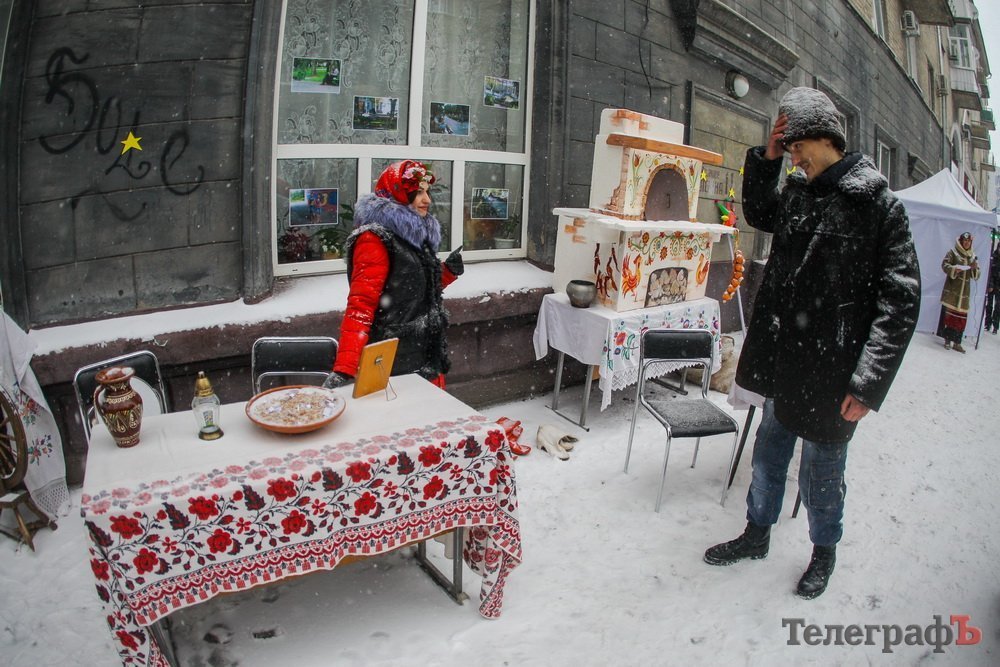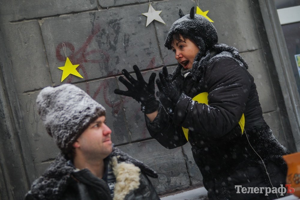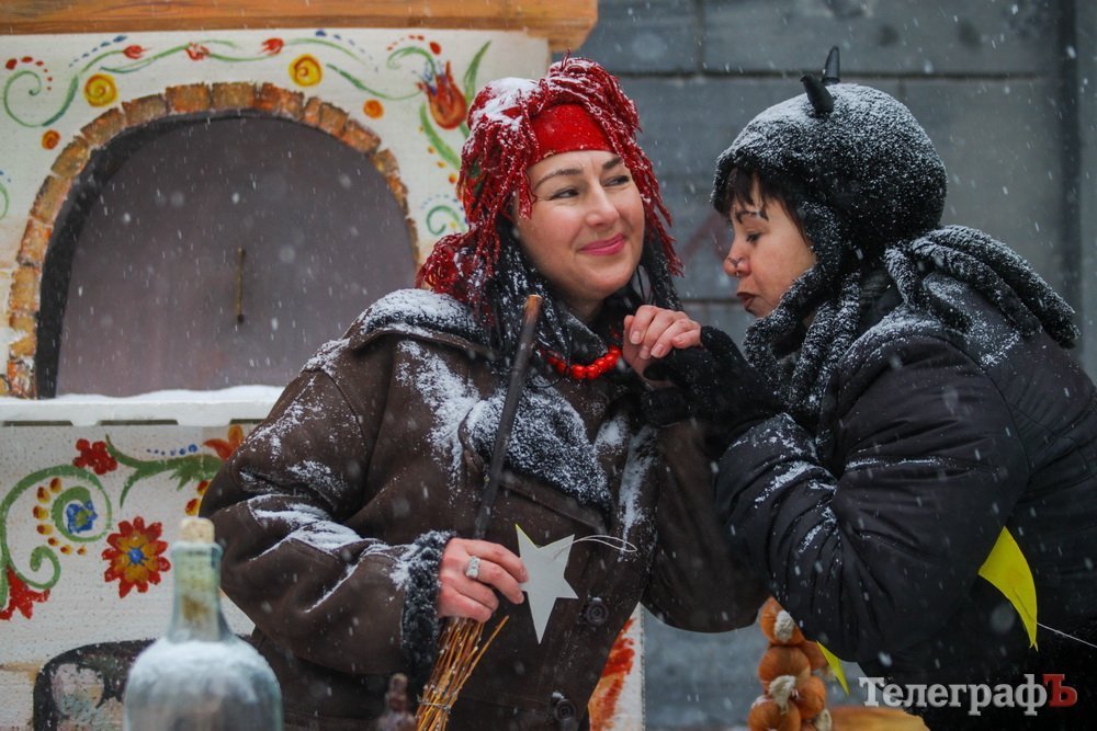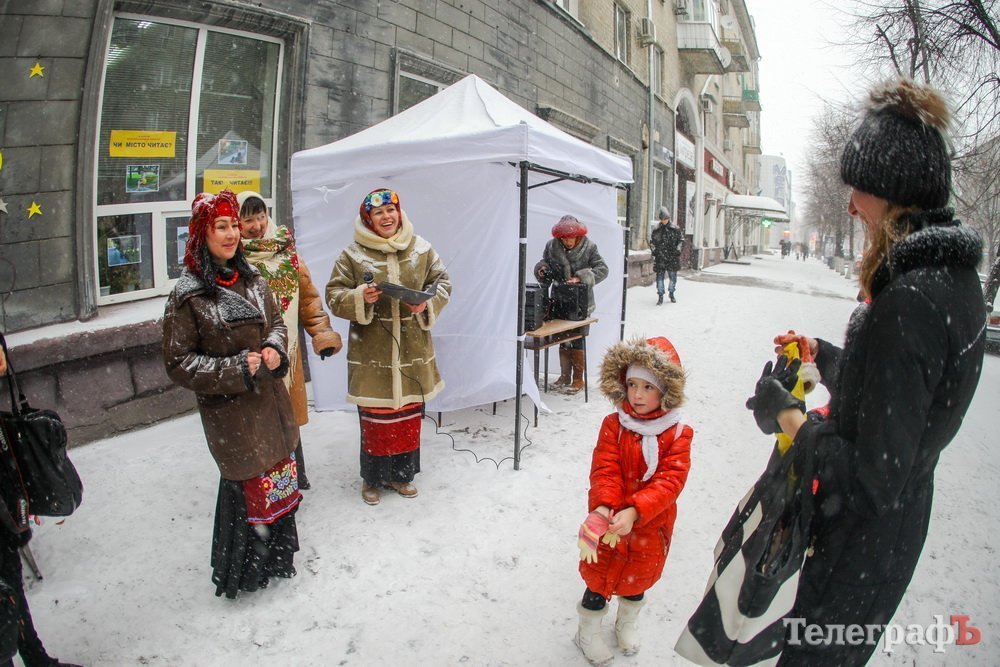 Напередодні Різдва Солоха з чортом ворожили кременчужанам. Персонажі гоголівської повісті «Ніч перед Різдвом» зустрічали містян біля відділу Центральної бібліотеки.