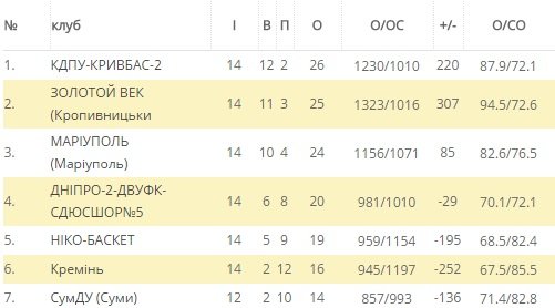 Турнірна таблиця