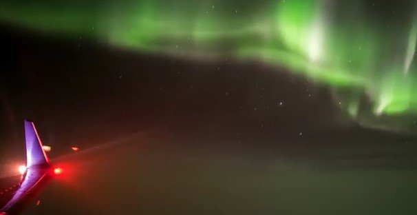 За сутки видео, на котором самолёт пролетает сквозь зелёные волны северного сияния, посмотрели почти 30 тыс. раз.