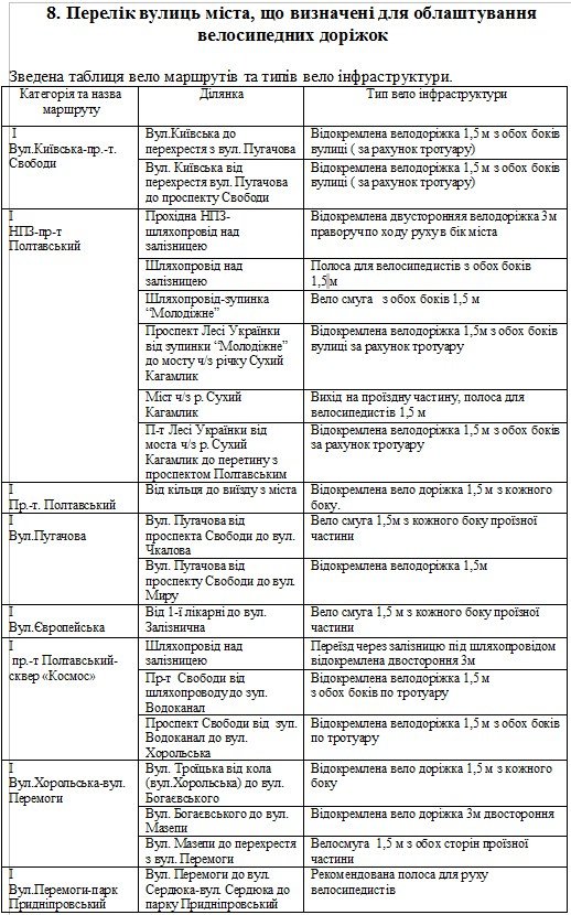 Выдержки из документа "Концепция развития велосипедного движения на 2017 - 2027 годы в г. Кременчуге"
